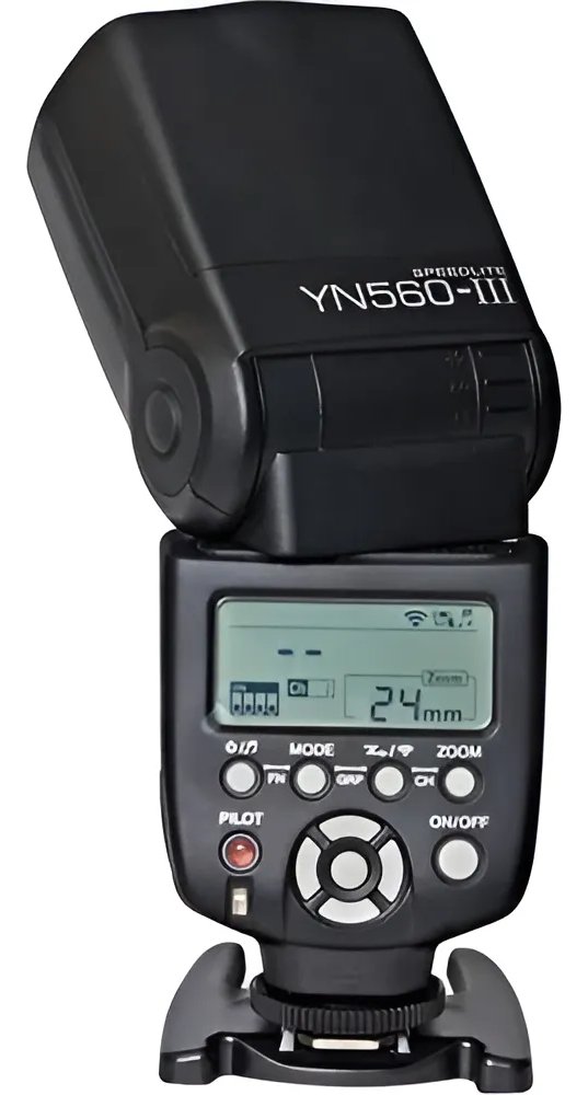 • Flash Yongnuo YN560EX III, potente, confiable y totalmente manual, perfecto para controlar la iluminación en cada disparo. Ofrece modo Multi, zoom ajustable y compatibilidad total con cámaras Canon.